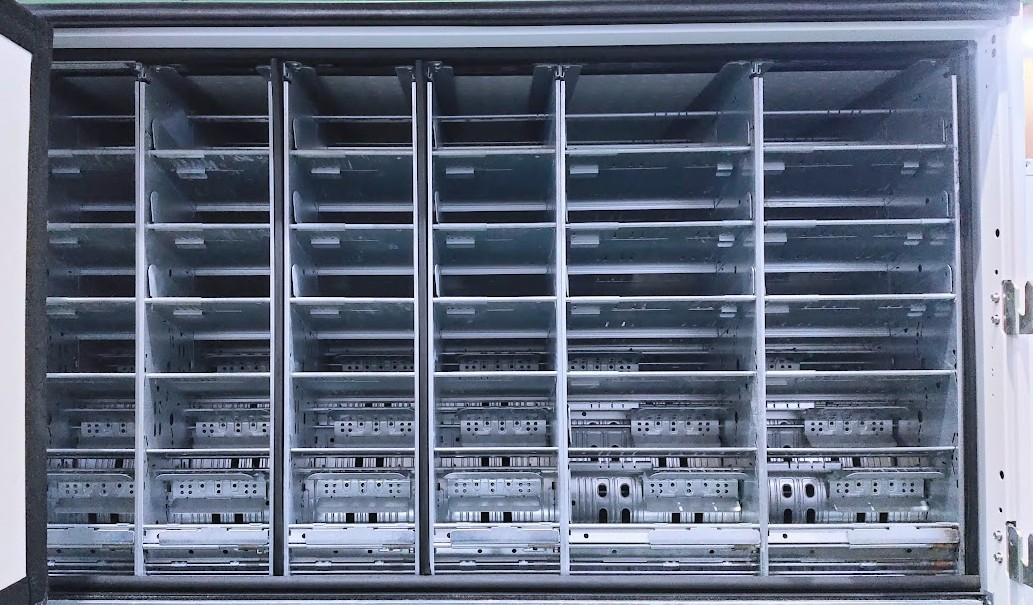 ※重量(推奨重量200g以上)によってはラックの途中で止まってしまい搬出口まで落ちない場合があります。搬出テストいたしますので、お気軽にご相談ください。