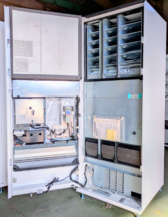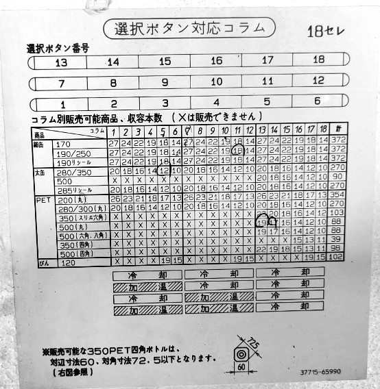 なので、価格変更時に面倒な価格シールの貼り替えの手間が無く、価格設定ミスも防ぎやすいです。カウンター(総搬出数)もまだ「9874」と少なく、程度の良い自販機です。