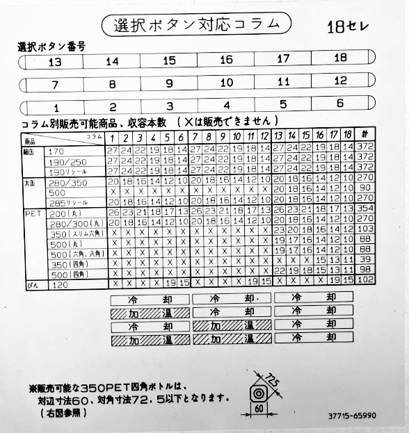 なので、価格変更時に面倒な価格シールの貼り替えの手間が無く、価格設定ミスも防ぎやすいです。カウンター(総搬出数)もまだ「14919」と少なく、程度の良い自販機です。