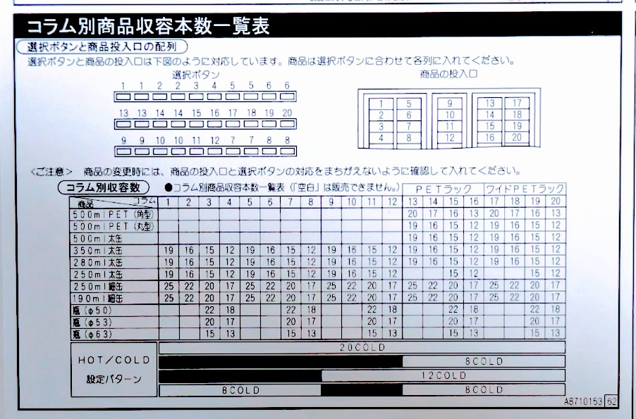 なので、価格変更時に面倒な価格シールの貼り替えの手間が無く、価格設定ミスも防ぎやすいです。カウンター(総搬出数)もまだ「215」と非常に少なく、程度の良い自販機です。